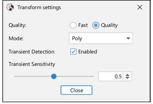 This part allows you to change two advanced transformation settings: Quality, Mode and Transient Sensitivity.