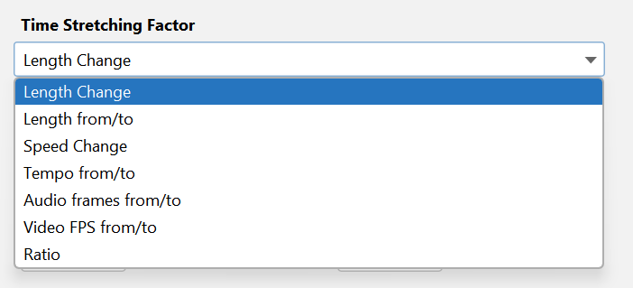 More generally, any time stretching factor specified using any of the options is then reflected in the other options.