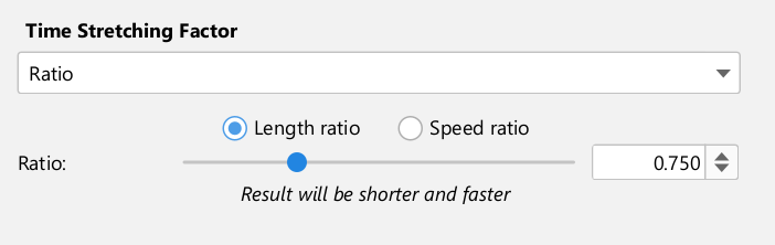 Specify the time stretching factor directly as the ratio (quotient) between: