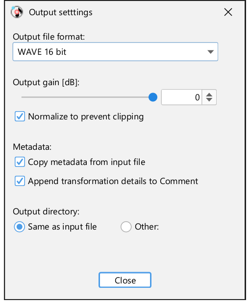 The output settings discussed above apply to the selected input file(s). See section 4.3.1 to change the default values to apply to input files that are added.