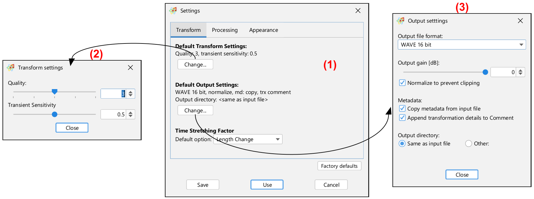 The settings on this tab have no effect on audio aspects (quality, timbre, etc.) of the transformed files. There are more "system" settings.