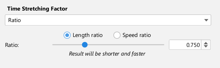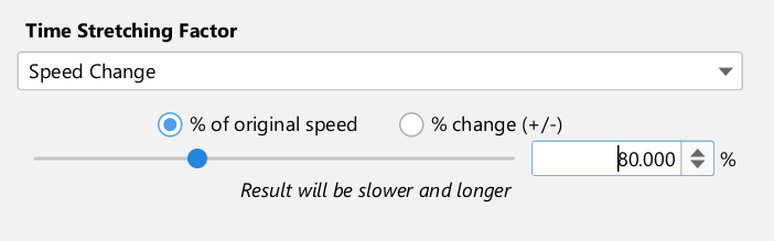 (1)Time Stretching Factor: this is where you choose by how much to speed up or slow down the audio file.